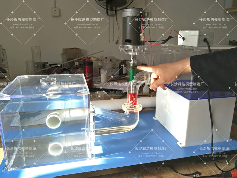 模型采用行业首创的肘形进水、直管出水的流道结构,核心流道部件选用透明高耐磨有机玻璃流道,精密模具压型制作:高耐磨特性确保模型长期反复实验后仍保持结构精度,透明属性则让流道内部的水流形态一览无余,彻底解决了传统金属或不透明流道无法直观观测内部流态的痛点。